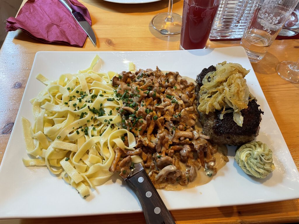 Weiter ging es durch die Weinberge nach oben, bis es eben wurde und ähne wieder abe zur Ziegelhofstraußi für ein leckeres Mittagessen.